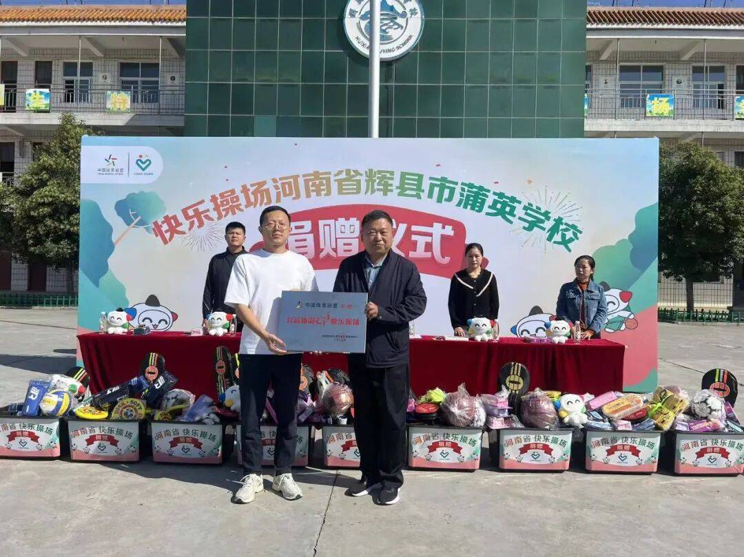9月25日,一辆满载体育器材的体彩公益快车驶入辉县蒲英小学,为这所乡村学校带来了期盼已久的快乐操场。河南体彩新乡分中心负责人向学校授予公益体彩 快乐操场牌匾,并将篮球、跳绳等崭新器材分发到孩子们手中。面对琳琅满目的体育用品,孩子们欢呼雀跃,纯真的笑容感染了在场所有人。