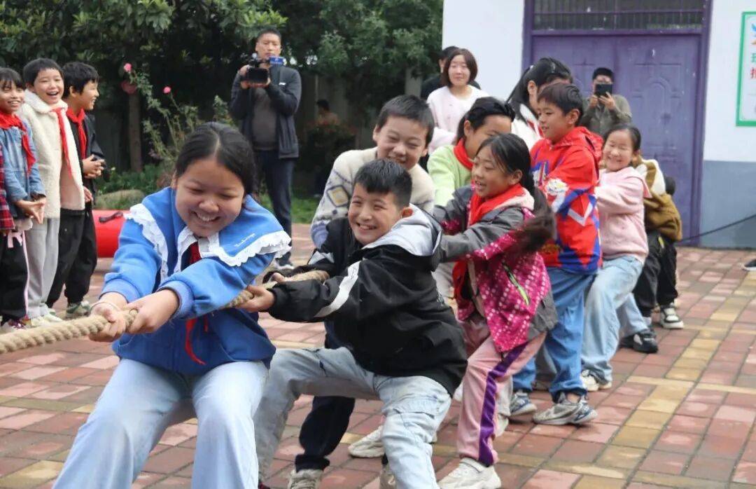 加油!加油!9月24日上午,南阳市镇平县彭营镇罗李沟小学的呐喊声打破了乡村的宁静。20名孩子紧握崭新的拔河绳,小脸涨得通红,绳中央的红绸带在欢呼声中来回摆动。这是河南公益体彩 快乐操场捐赠活动的现场,孩子们正用一场热火朝天的拔河比赛,迎接这份期盼已久的体彩礼物。