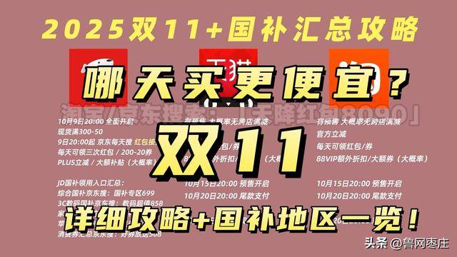 --- 三、什么时候买最便宜?省钱党必看3大黄金时段 记住这三个晚8点,下单立省30%! 1. 第一波:10月9日/15日20:00(早鸟价+库存锁货) - 京东:急需换手机、电脑的抓紧!旗舰机直降2000元,PLUS会员提前锁库存 - 天猫:雅诗兰黛、赫莲娜等大牌美妆“买1送1正装”,定金膨胀最狠 2. 第二波:10月31日20:00(全品类满减启动) - 两平台同步开闸!大家电、家具满减叠券后近乎5折 重点:京东搜“数码省2000”领数码国补,苹果、华为再降500元! 3. 第三波:11月10日20:00(终极狂欢夜) - 红包雨金额翻倍!京东每晚8点搜“红包2000”抽11111元 - 爆款限时半价:戴森吹风机、iPhone17、茅台等限量1000件 --- 四、售后防坑指南:价保+退货白捡差价 买贵了?这样操作平台倒贴钱! - 京东:所有商品30天价保!下单后降价,在“订单详情”点“价格保护”一键退差;自营家电180天只换不修 - 淘宝/天猫:预售定金随时可退无违约金;现货价保至11月14日,发现降价截图找客服补差 - 凑单退货:京东满减订单可退部分商品,剩余仍享折扣(例:凑单后退掉袜子,冰箱照享300-50) 真实案例: @宝妈小琳 去年双十一买电视,7天后降价600元,一键价保退回差价:“仿佛中了隐形彩票!” --- 终极行动清单(照做立省千元) 1. 立马存口令:京东搜“天降红包8090”,淘宝搜“天降红包8090” → 每日领红包 2. 设3个闹钟:10月31日/11月10日晚8点,10月15日晚8点(天猫预售) 3. 查价保神器:加购商品点“价格走势”,防先涨后降(京东APP专属功能) 4. 会员开卡回本:京东PLUS领千元券包,淘宝88VIP兑换大额消费券 --- 省心口诀: 京东九晚八抢数码,天猫十五定金花; 三百减五十叠红包,三十价保不怕查! 若问何时最省钱?记住三个晚八点!
