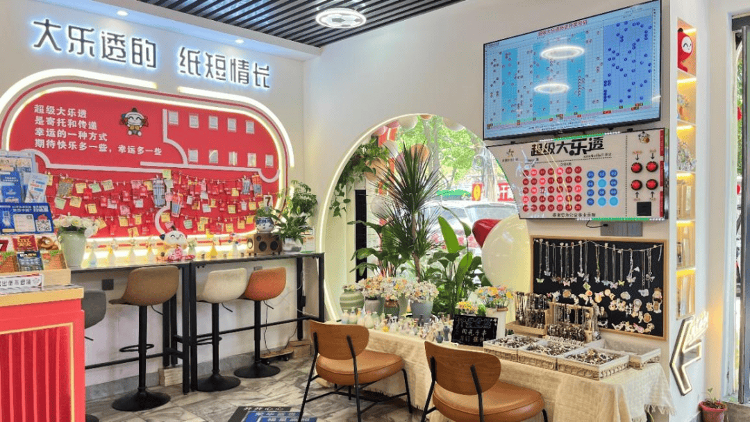 这家体彩店在当地小有名气,已经成为当地的“网红打卡地”,代销者是一对年轻的95后夫妻:“我们的定位就是幸运+好玩儿,让顾客在收获幸运的同时,还能感受到惬意与美好,诗意和远方。”