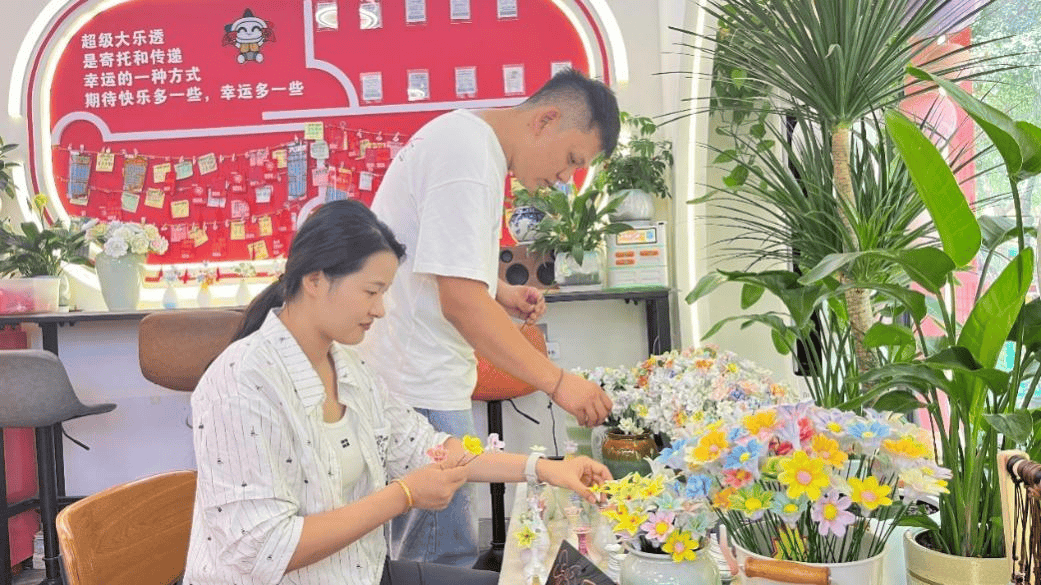 陶瓷手串、陶瓷花瓶、手工陶瓷花……每一件都独具匠心,尤其是陶瓷手串,借着当下火爆的手串热潮,迅速成为了店里的 “爆款”。不少年轻人甚至专门为了这精致的陶瓷手串慕名而来,当然,挑选心仪的饰品时,也会试试手气,买上几注彩票。