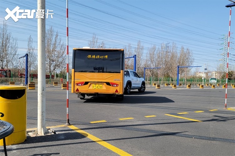 在桩考测试中,学员需要将车辆分别从左右两个方向完成倒车入库。牵引车的倒车方式和常规单机车辆不同,在倒车的初始阶段需要反打方向,待被牵引拖车发生角度变化之后,牵引车辆再次向另一个方向转动方向盘,并逐步微调整体汽车列车的行进轨迹,这个项目将是驾校重点培训的科目。