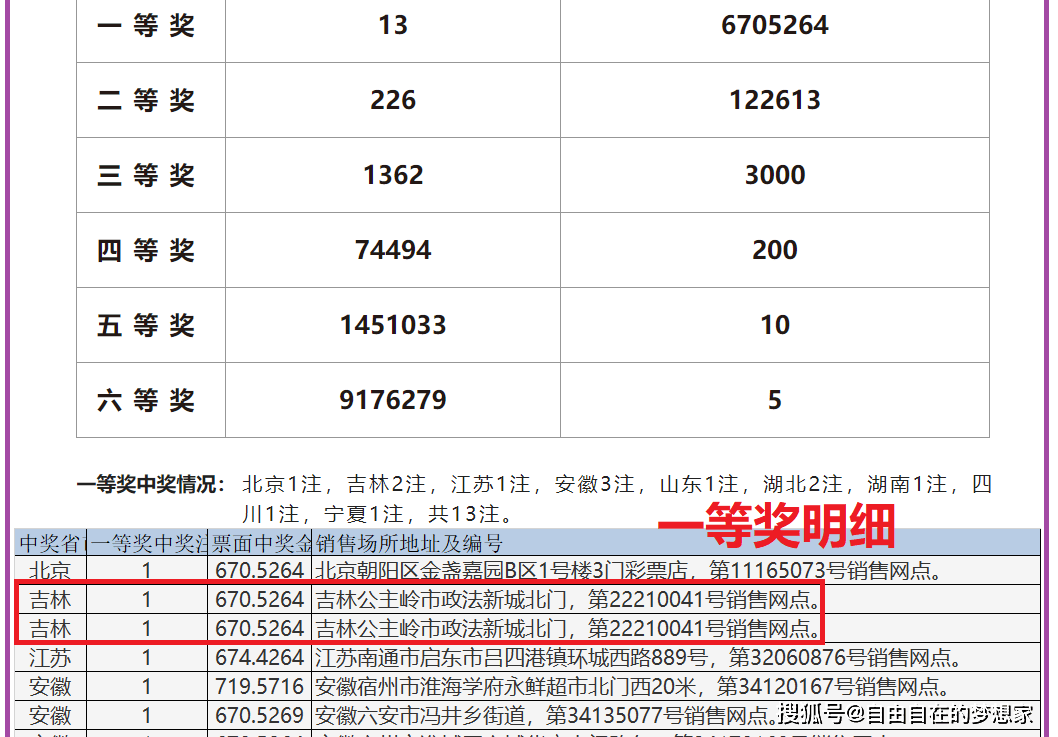 不得不说,上期的中奖号码如果前三个号码去掉零的话,组合起来确实非常像一个手机号码。该中奖号码产生了13注一等奖,分布在全国9个省市,每注奖金约为670万。同时,还开出了226注二等奖,每注奖金约为12万。从一等奖的中奖明细来看,其中7注采用了单式投注方式,而其他6注采用了胆拖或复式投注方式。吉林省的两注一等奖都来自同一家彩票店,不知道是否为同一个幸运儿所中得。