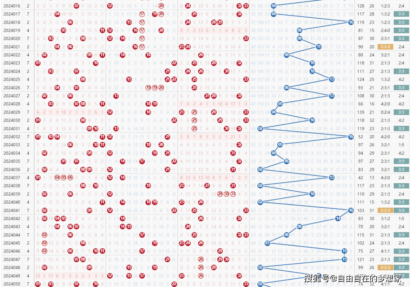 从最近100期的开奖数据来看,蓝球06一共开出过5次(未含本期),属于相对冷门的号码。