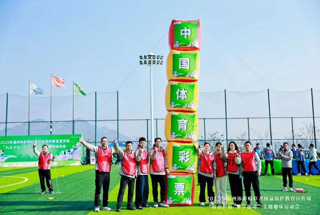 在温州桃花岛体育休闲公园足球场,一场以“权益护航,乐享运动”为主题的趣味运动会成功举办。活动通过体育互动形式传递责任彩票理念,增强购彩者权益保护意识,吸引了120名体彩从业人员与购彩者共同参与,在运动中增进理解、凝聚共识。