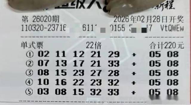 2026-02-28百家乐,百家乐官方网站,百家乐APP下载,百家乐游戏平台,百家乐网址,百家乐试玩,百家乐的玩法,百家乐技巧,百家乐公式,百家乐打法,百家乐电子,21点,德州扑克,快三,pk10,时时彩,北京赛车大乐透第26020期,两张风格迥异的实票在平台引发关注。一张是面值220元的单式票,22倍投注;另一张是面值2574元的复式票,13个前区号码加2个后区号码。两张票金额相差十余倍,却在后区号码上达成惊人一致——都锁定了05、08。
